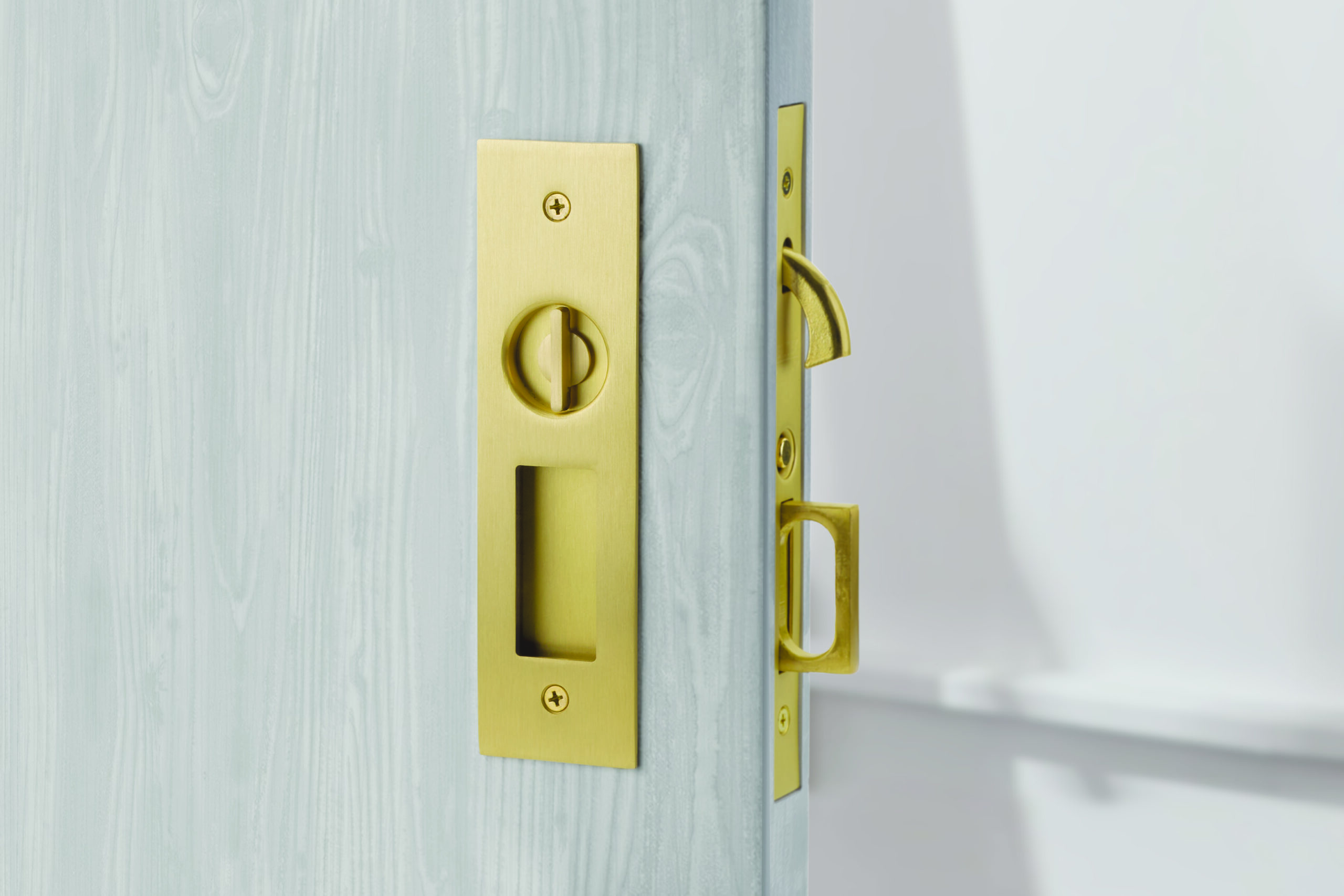 Interior door hardware is available in a variety of designs and finishes to complement any home. Lever handles are popular for interior doors, providing ease of use and accessibility. Knob handles offer a timeless aesthetic and are available in a multitude of designs to complement different interior styles. Privacy and passage sets are essential for bedrooms and bathrooms, with privacy sets featuring a locking mechanism for added security and passage sets allowing for easy opening and closing without a lock. Pocket door hardware facilitates space-saving solutions, enabling doors to slide into the wall rather than swinging open.