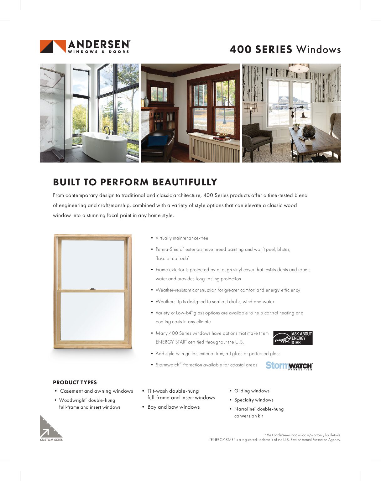 Awning windows can be exceptionally energy efficient especially when they use Low-E glass options that are Energy-Star Certified! Awning windows are made with a single-sash design which makes them less likely to have gaps or air leaks. These tighter seals prevent hot air from escaping in the winter and cool air escaping in the summer. If you are looking to maximize your energy efficiency look for energy efficient glass options with EnergyStar certification. Also consider choosing more efficient energy materials such as fiberglass which boasts more energy efficiency than glass.